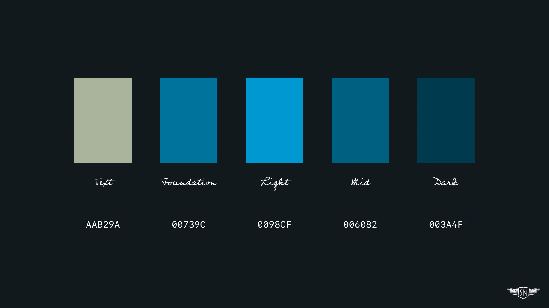 Change the foundation colour once, and every derived colour updates automatically, without recalculating anything by hand. Outside of animated graphics, I could use this same approach to define colours for the states of interactive elements such as buttons and links.