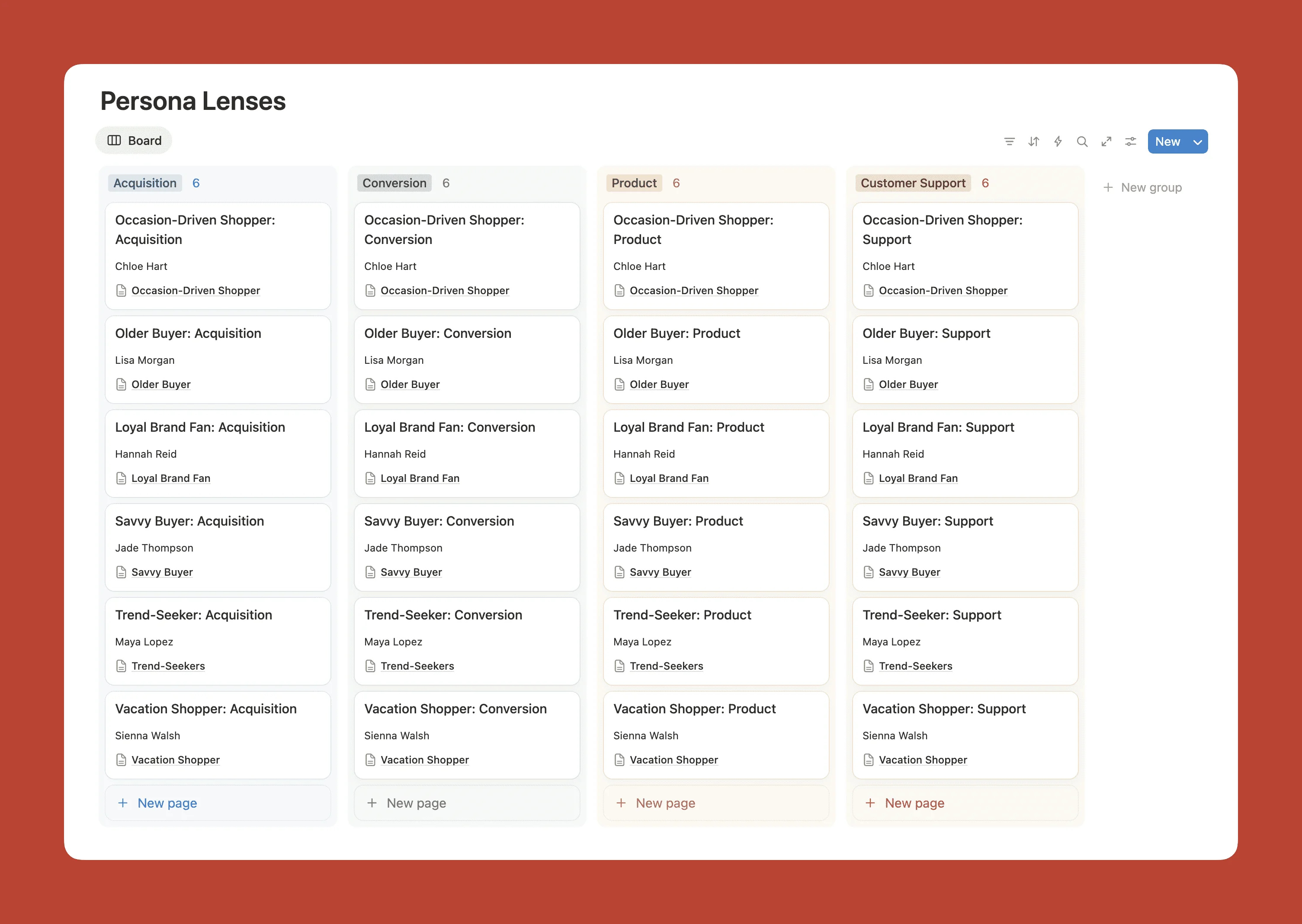 You can also create different lenses or perspectives within each persona, tailored to specific business functions. Your “Weekend Warrior” persona might have a marketing lens (messaging preferences, channel habits, campaign responses), a product lens (feature priorities, usability patterns, upgrade triggers), and a support lens (common questions, frustration points, resolution preferences). When a marketing manager asks a question, the AI draws on the marketing-relevant information. When a product manager asks, it pulls from the product lens. Same persona, different depth depending on who is asking.