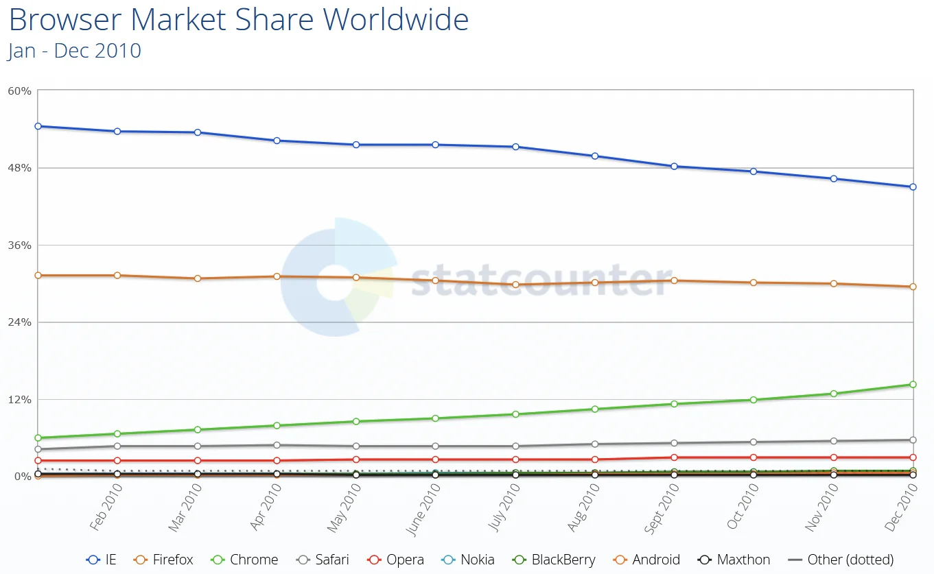 You see, browser differences were pretty significant back then. This was a time when Internet Explorer was still the dominant browser, with Firefox being the close second, but starting to lose market share due to Chrome rapidly gaining popularity. Although Chrome and Firefox were quite good at agreeing on web standards, the environments in which our apps were running meant that we had to support IE6 for a long time. Even when we were allowed to support IE8, we still had to deal with a lot of differences between browsers. Not only that, but the web of the time just didn't have that many capabilities built right into the platform.