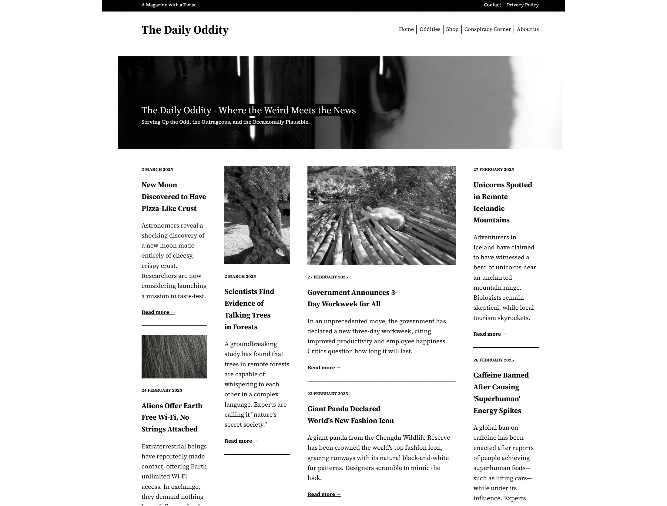 A news site layout with some tracks wider than others, and some items spanning the entire width of the layout: