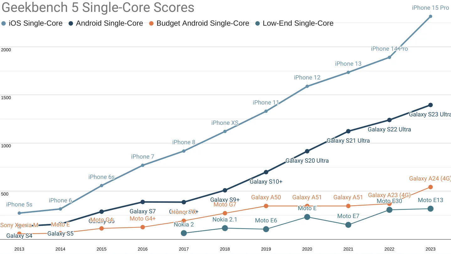 Check my colleague Alex Russell’s yearly performance inequality gap blog, which shows that premium devices are largely absent from markets with billions of users due to wealth inequality. And this gap is only growing over time.