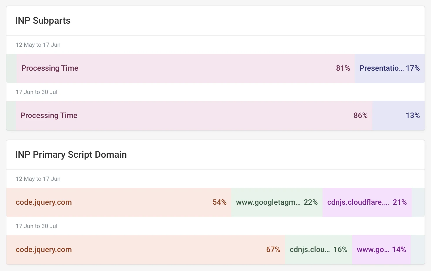 RUM data is also generally needed to properly diagnose issues related to the Interaction to Next Paint (INP) metric. Specifically, real user data can provide insight into what causes slow interactions, which helps you answer questions like: