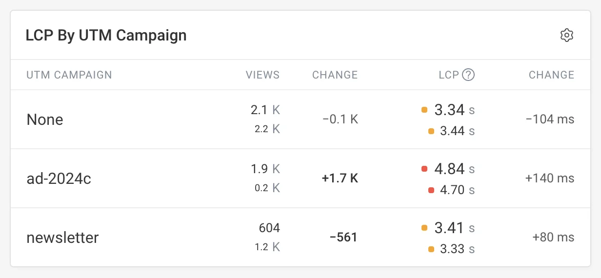 Launching an ad campaign, for example, often increases redirects, reduces cache hits, and shifts visitor demographics. When you see a regression in RUM data, the first step is to find out if the change was on your website or in your visitor’s browser. Check for view count changes in ad campaigns, referrer domains, or network speed to get a clearer picture.